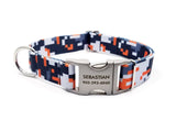 Our colorful and vibrant polyester webbing collars with personalized buckle are some of the coolest personalized buckle dog collars on the planet. These collars are made with UV, Rot, Mildew and Moisture resistant polyester webbing printed with a dye sublimation process that permanently infuses the vibrant colors into the material. Lightweight, strong and silky smooth to caress your pups neck in comfort!