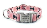 Our colorful and vibrant polyester webbing collars with personalized buckle are some of the coolest personalized buckle dog collars on the planet. These collars are made with UV, Rot, Mildew and Moisture resistant polyester webbing printed with a dye sublimation process that permanently infuses the vibrant colors into the material. Lightweight, strong and silky smooth to caress your pups neck in comfort!