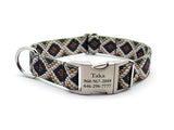 Our colorful and vibrant polyester webbing collars with personalized buckle are some of the coolest personalized buckle dog collars on the planet. These collars are made with UV, Rot, Mildew and Moisture resistant polyester webbing printed with a dye sublimation process that permanently infuses the vibrant colors into the material. Lightweight, strong and silky smooth to caress your pups neck in comfort!