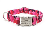 Our colorful and vibrant polyester webbing collars with personalized buckle are some of the coolest personalized buckle dog collars on the planet. These collars are made with UV, Rot, Mildew and Moisture resistant polyester webbing printed with a dye sublimation process that permanently infuses the vibrant colors into the material. Lightweight, strong and silky smooth to caress your pups neck in comfort!