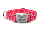 Our colorful and vibrant polyester webbing collars with personalized buckle are some of the coolest personalized buckle dog collars on the planet. These collars are made with UV, Rot, Mildew and Moisture resistant polyester webbing printed with a dye sublimation process that permanently infuses the vibrant colors into the material. Lightweight, strong and silky smooth to caress your pups neck in comfort!