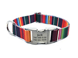 Our colorful and vibrant polyester webbing collars with personalized buckle are some of the coolest personalized buckle dog collars on the planet. These collars are made with UV, Rot, Mildew and Moisture resistant polyester webbing printed with a dye sublimation process that permanently infuses the vibrant colors into the material. Lightweight, strong and silky smooth to caress your pups neck in comfort!