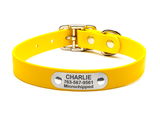 Flying Dog stink proof and waterproof collars hold up great in sunlight. Impervious to dirt, moisture and odors, these collars rinse clean in seconds with a little soap and water. Genuine Biothane coated webbing which has proven durability in applications where safety, cleanability, flexibility and strength are critical.